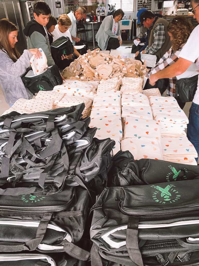 On November 5, we put together 200 bags that will be donated to St. Louis Children’s hospital through the year. These bags include Baby Blankets, Baby Swaddles that can be worn while also having IVs attached the infant, A CHD stuffed animal, IV tape for babies face, and a ‘heart warrior’ hat. Thank you to all our volunteers who helped!